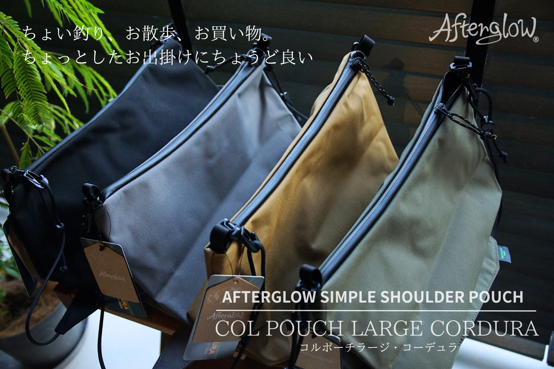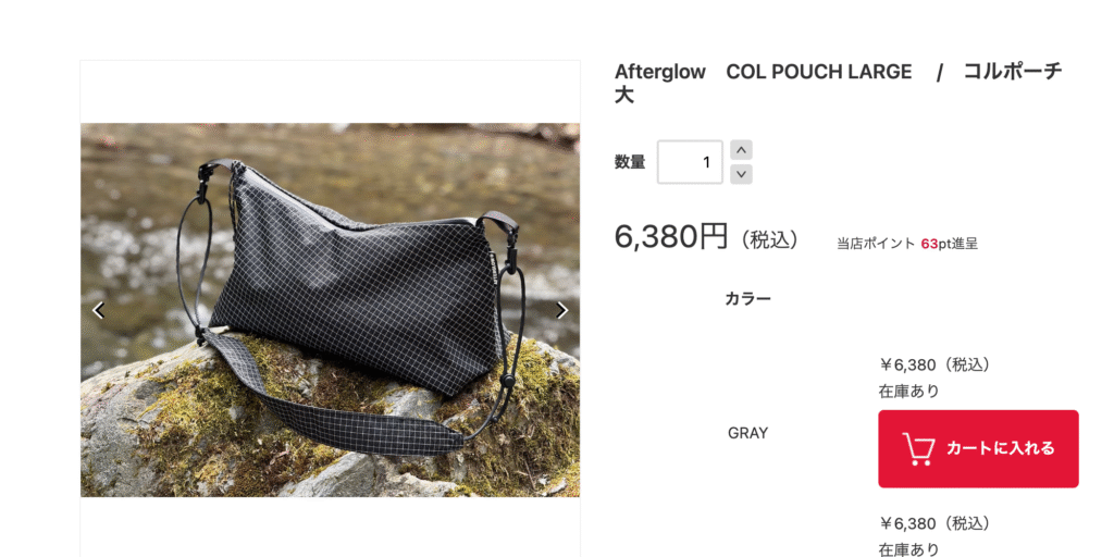 Afterglow(アフターグロー)のコルポーチはちょっとした外出時に、なんでもポイっと入れてしまえる広い開口部と容量がとっても使いやすいです。