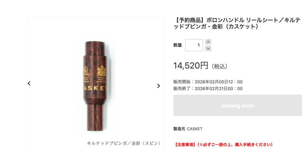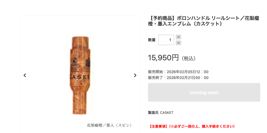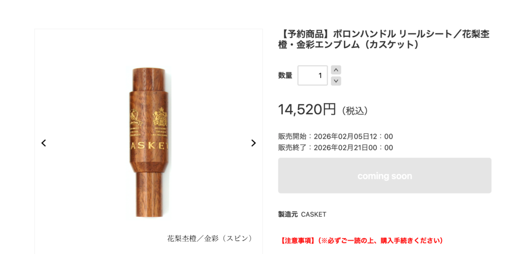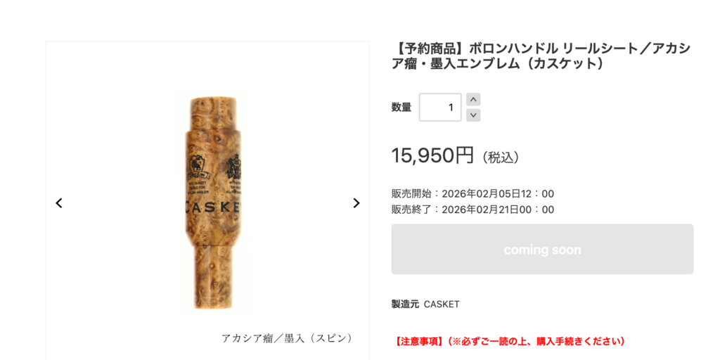 それぞれの商品ボタンに記載してある価格はリールシート部分の価格です。