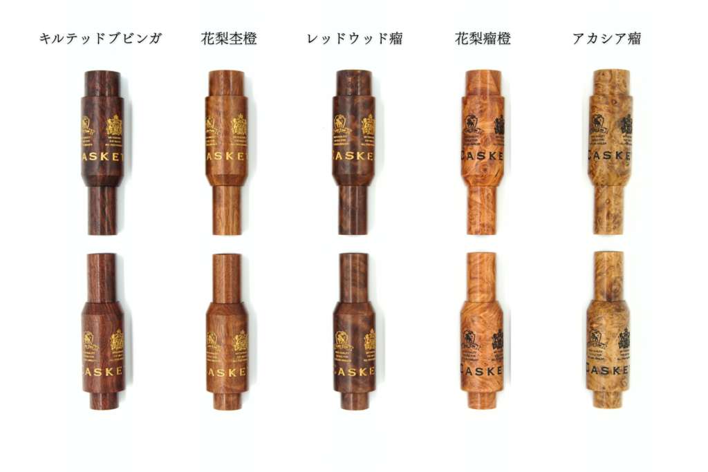 こちらは「墨入」を施した花梨瘤橙とアカシア瘤。