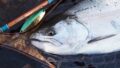 1本だけ良いサクラマスが掛かったけど、ルアーを呑まれてリーダーが歯に触れたのか、ラインブレイク。