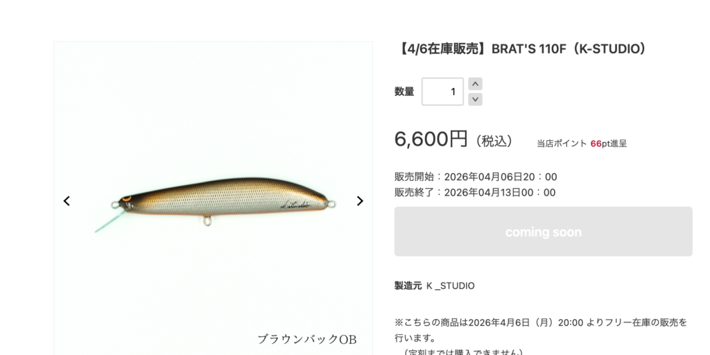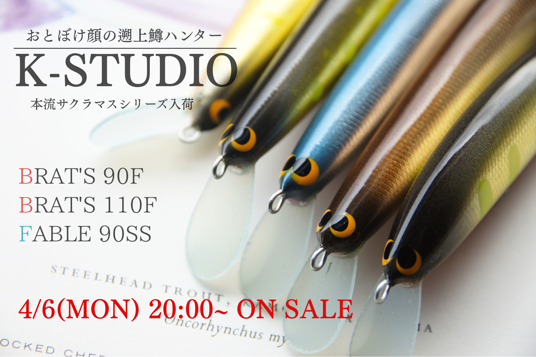 今回は本流のサクラマスシーズンに合わせて、BRAT’Sシリーズは9cmと11cmが入荷しました。