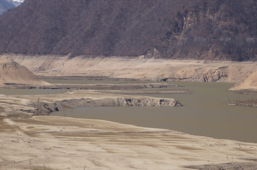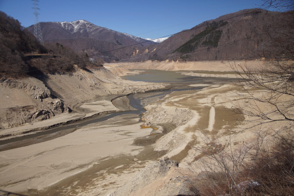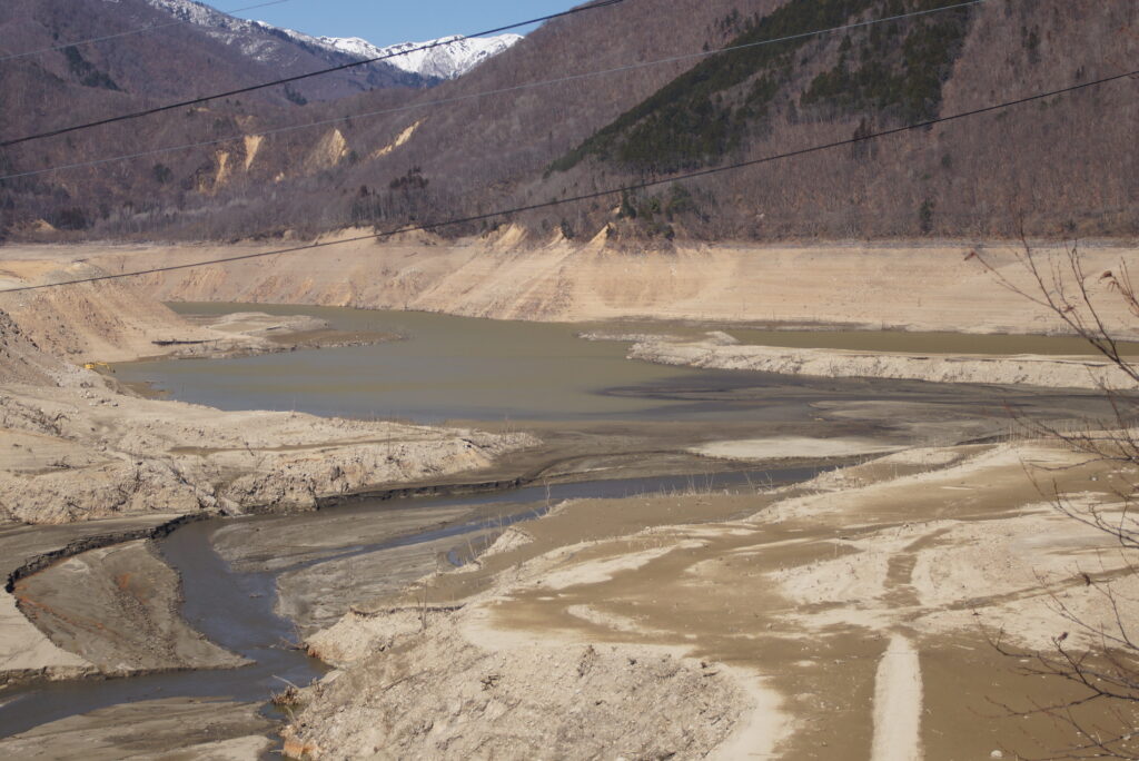水位は701mとさらに減水しており、湖全体は強い濁りが発生しています。