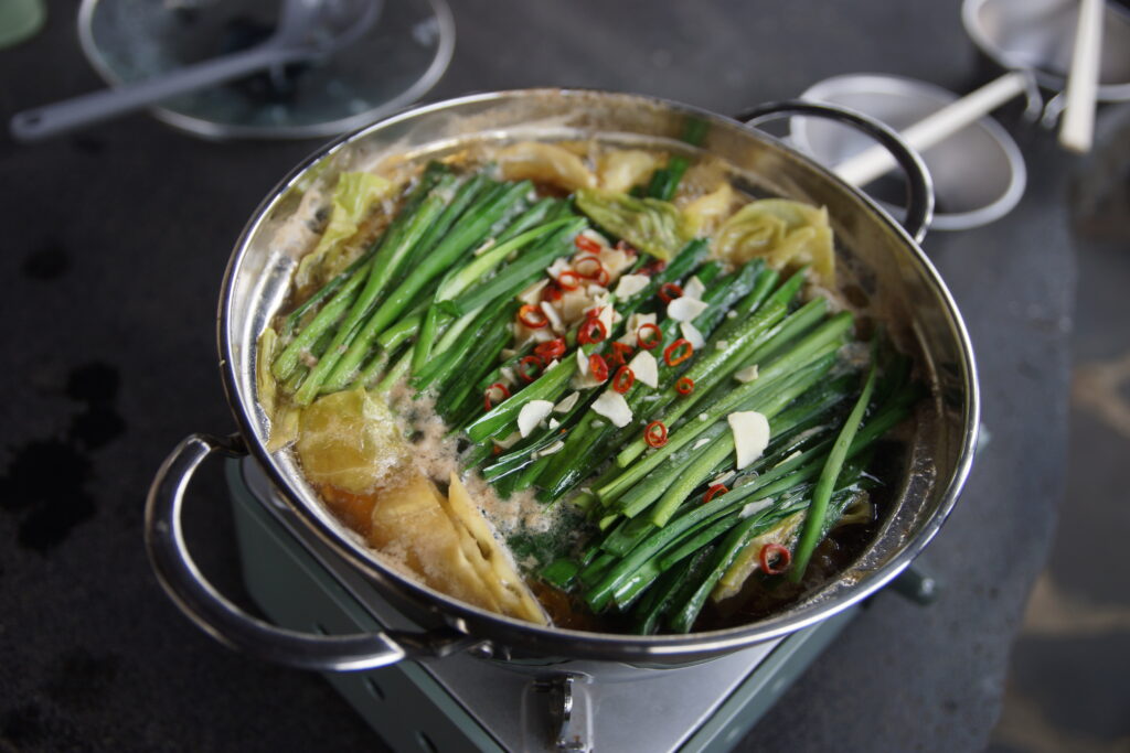 撮影時にお魚が脱走してしまって写真無しのため、お昼のもつ鍋の写真を載せます(笑)
