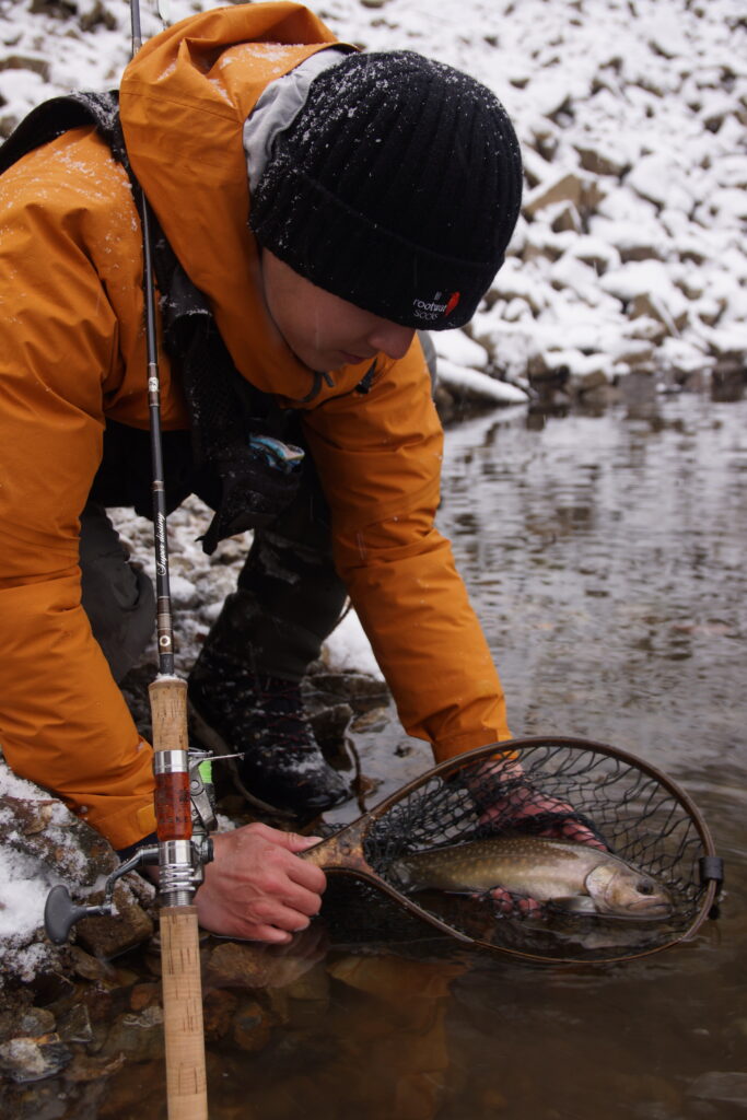 朝はスプー二ングをメインに開始してすぐに良型のイワナがヒットしましたが、魚の姿が見えたところで惜しくもフックアウト。