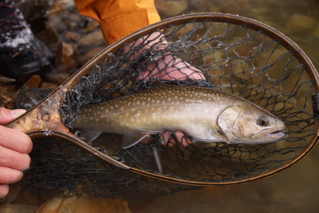 N様が立ち位置を変えてリーウェイジグ12gでボトムを探るとイワナがヒットしました。
