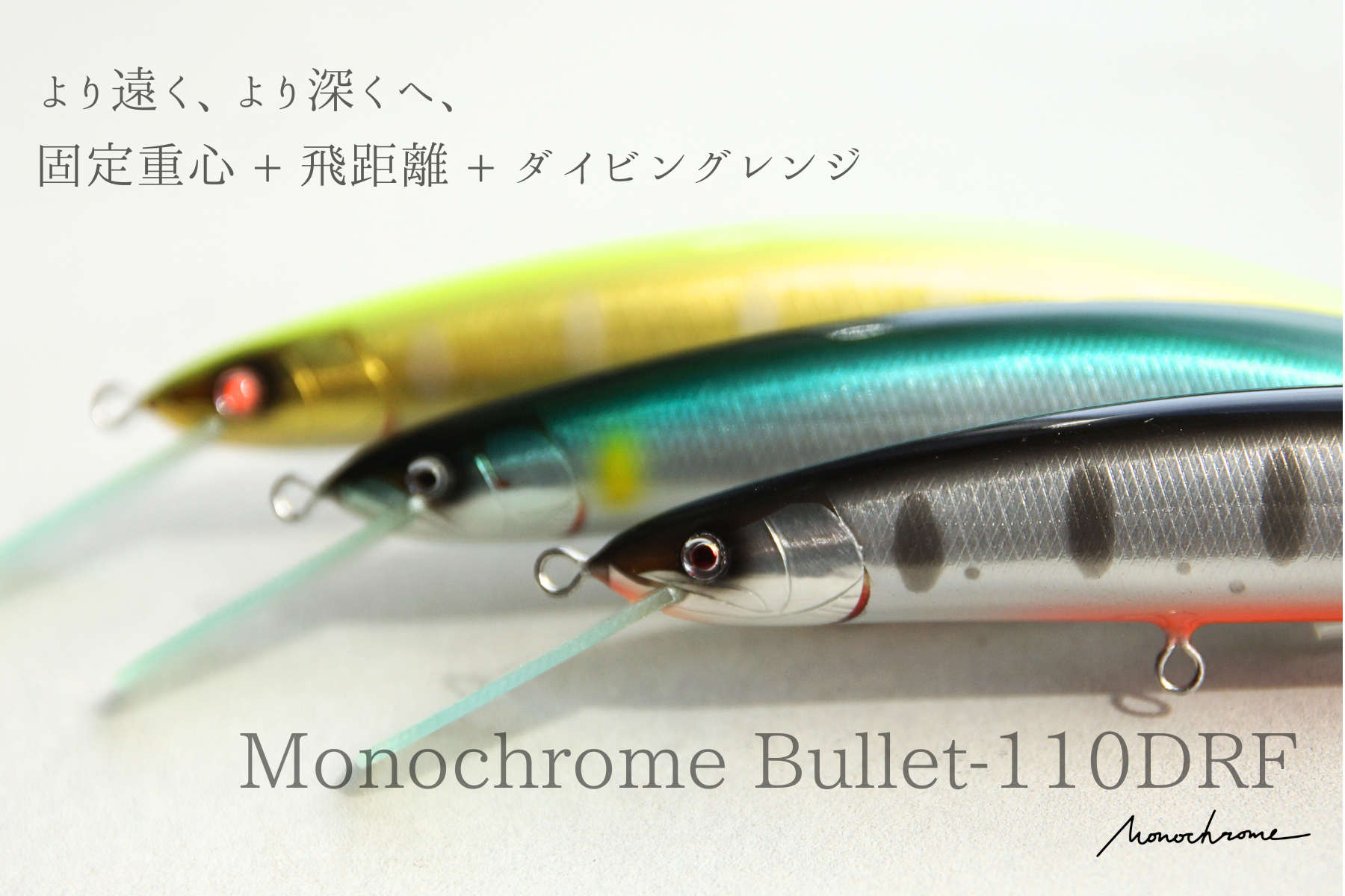 大本流でストレスを感じない、ぶっ飛びダイビングレンジのバルサミノーがモノクロームのバレットシリーズなのです。