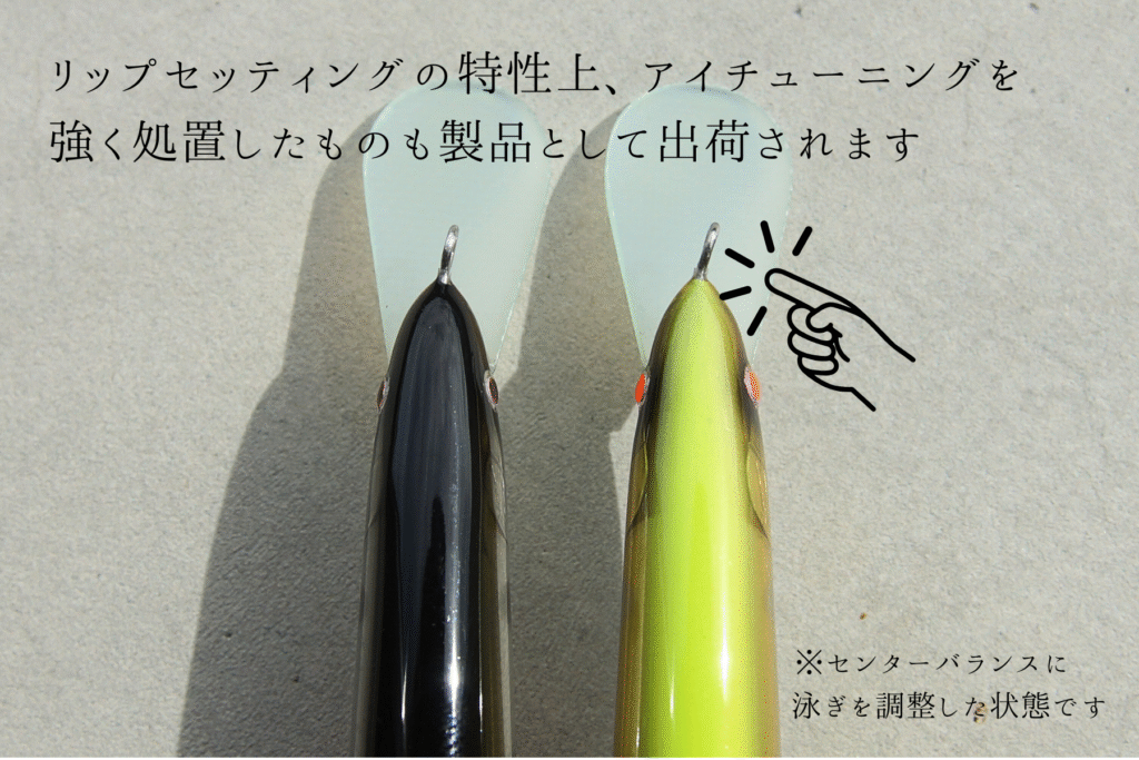 ハンドメイドルアーは必ず出荷前にスイムテストを行い、真っ直ぐ泳ぐようにアイのチューニングをしてから出荷されます。