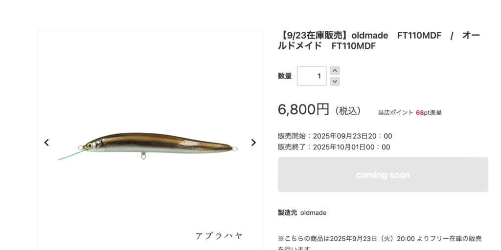 本日20:00より、oldmade FT110MDFのフリー在庫販売会を行います。