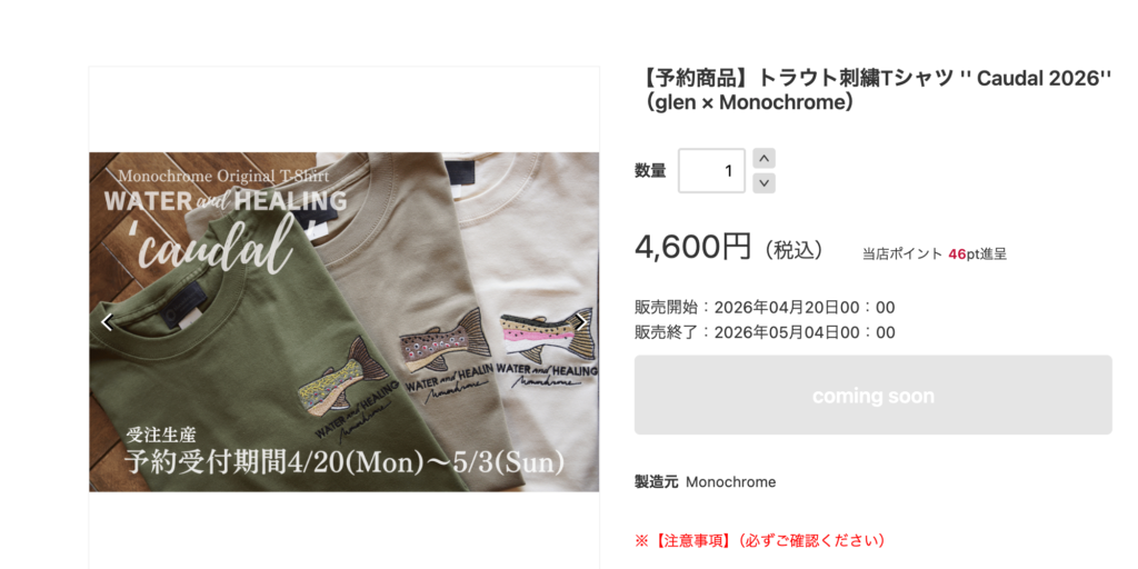 トラウト刺繍Tシャツ ”Caudal”2026」