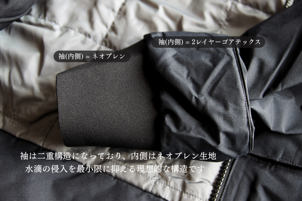 さらには二重袖構造で水滴の侵入を最小限に抑える構造。