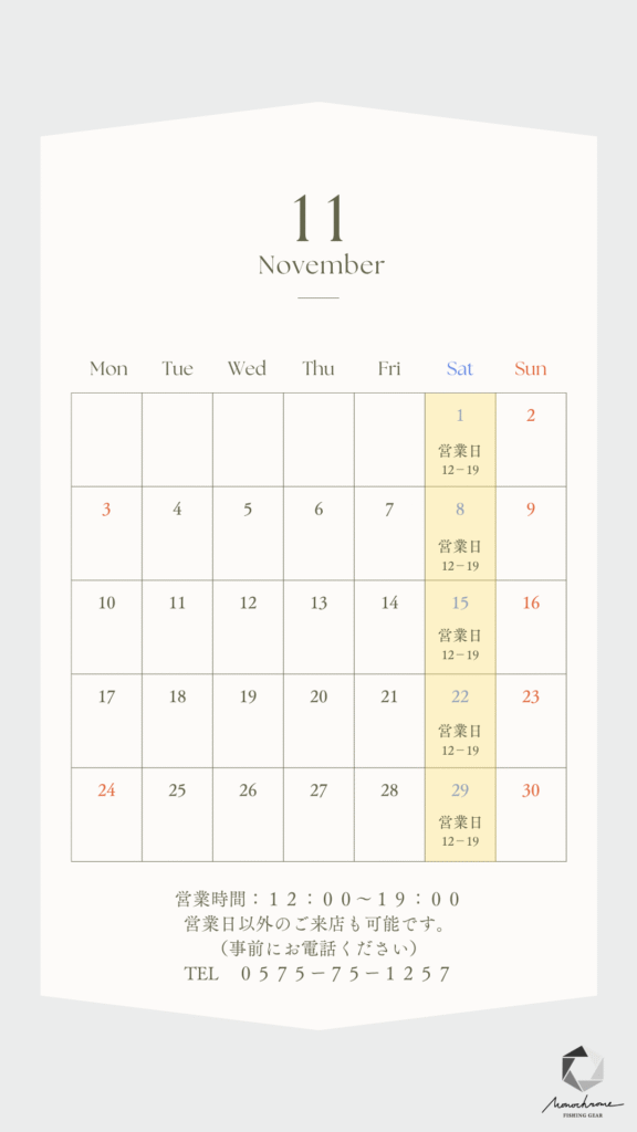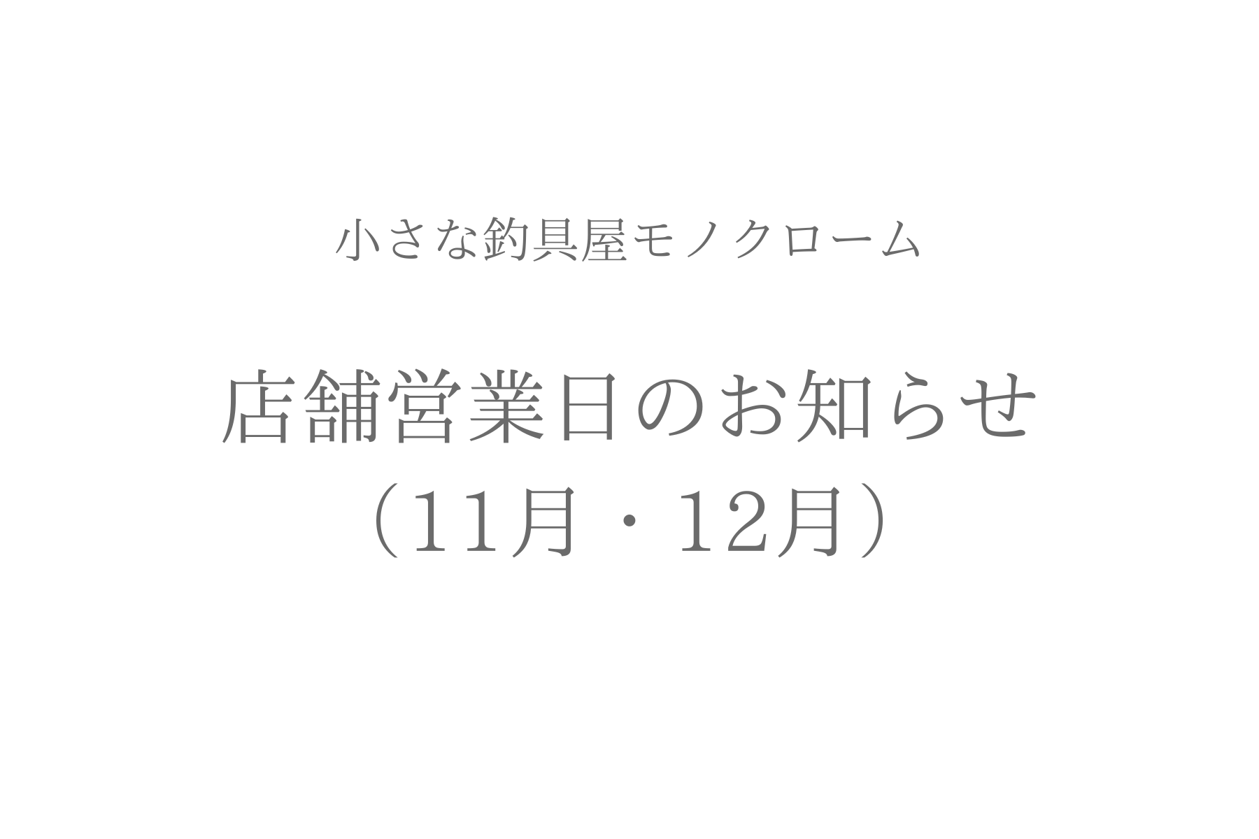 小さな釣具屋モノクローム(Fishing Gear Monochrome)の店舗営業日のお知らせです。