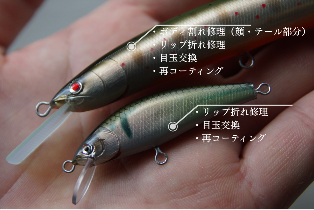 今シーズンお客様からお預かりしていたミノーのリペア(修理)が完了しました。
