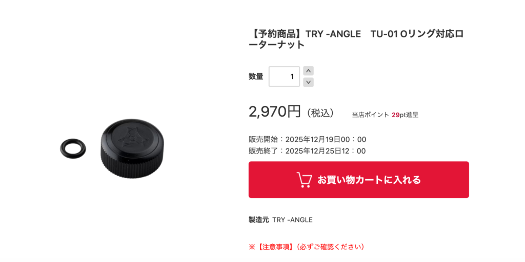 TU-01v+のローターナットはOリングを装着するための専用加工が施された新造パーツです。
